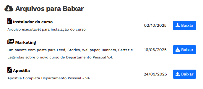 O curso oferece conhecimentos atualizados para administrar rotinas do Departamento Pessoal, como folha de pagamento, férias, benefícios, rescisões, contratos de trabalho, leis trabalhistas, seguridade social, remuneração, jornada e término de contrato.