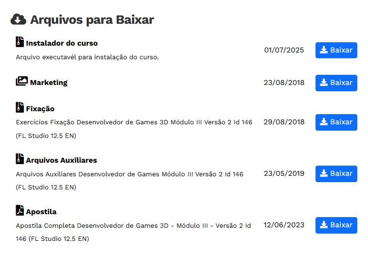 O Curso Desenvolvedor de Games 3D – Módulo III V.2 vem para complementar o conteúdo que vinha sendo exposto nos dois módulos anteriores. Nele, o aluno irá se familiarizar com o uso e aplicação do software FL Studio, ideal para criação de músicas e sons diversos, que são essenciais para tornar um jogo mais vivo, atraente e realista.