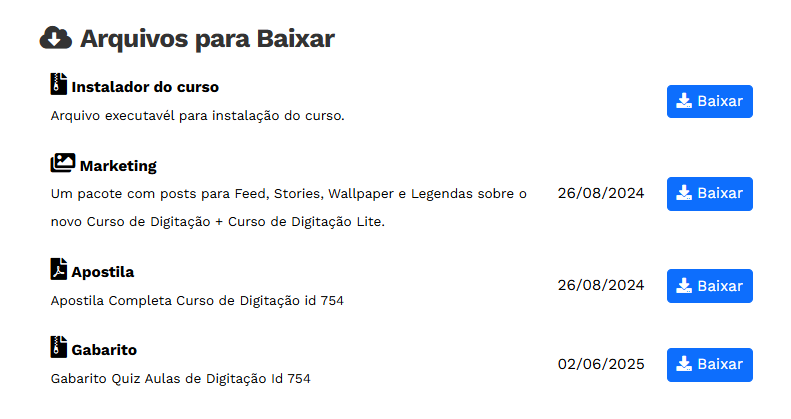 Este curso de digitação ensina desde os conceitos básicos do teclado até técnicas avançadas, combinando teoria e prática para aumentar eficiência e precisão. Ele também inclui dicas ergonômicas para garantir conforto e evitar lesões durante a digitação.