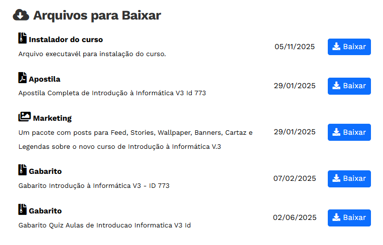 O curso sobre Introdução à Informática foi projetado para fornecer uma base sólida sobre os conceitos e práticas essenciais da informática. Se você é novo no mundo da tecnologia ou deseja aprimorar seus conhecimentos iniciais, este curso é ideal para você.